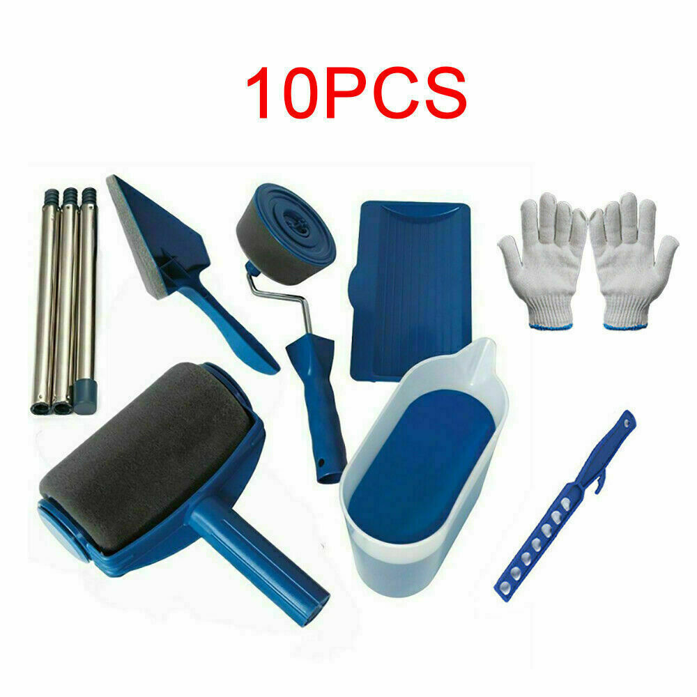 10Pcs Handle Paint Roller Pro Paint Brush Flocked Edger Wall Painting Tool Set