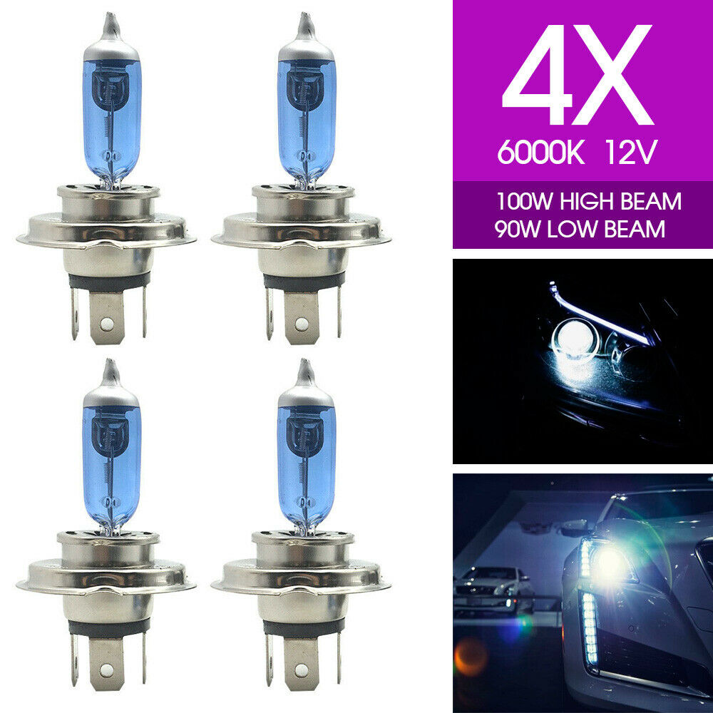 4X H4 HEADLIGHT GLOBES CAR LIGHT BULBS 100/90W 6000K 12V XENON SUPER WHITE