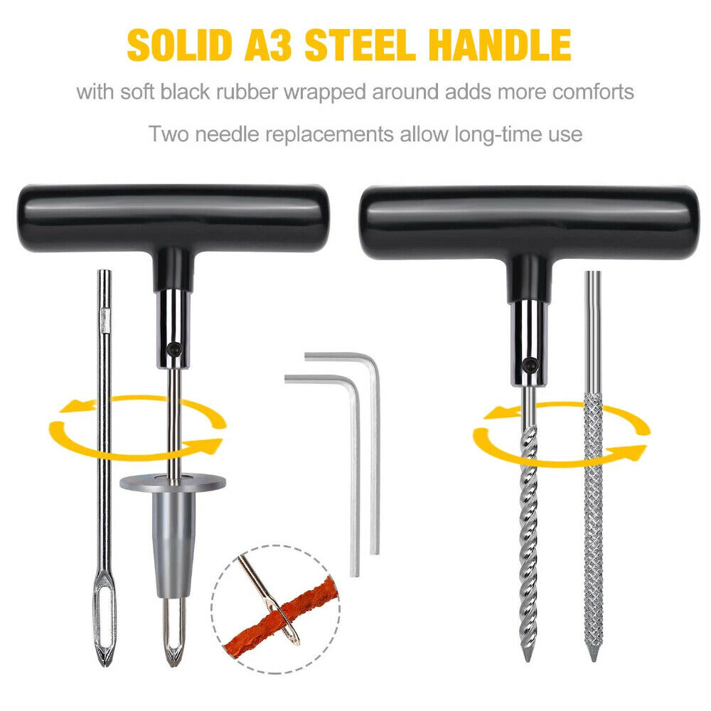 • ?Detailed Instruction for Faster Repair?A detailed procedure instruction is included to ensure anyone can repair their flat tire in the right and quick way. The spiral probe and insert tools which are made of high-strength steel, can let you easily pierce the repair plugs and quickly finished the repair work.